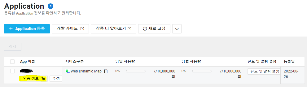 - 어플리케이션을 추가하고 나서 인증 정보 클릭