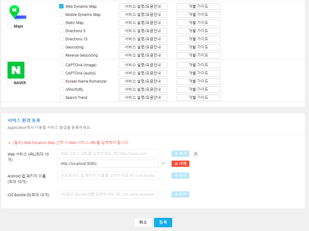 - 네이버맵 API는 결제수단을 등록해야 사용이 가능하다