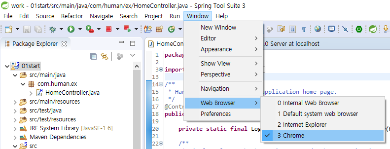 - Window → Web Browser → Chrome 설정 후 서버 재가동