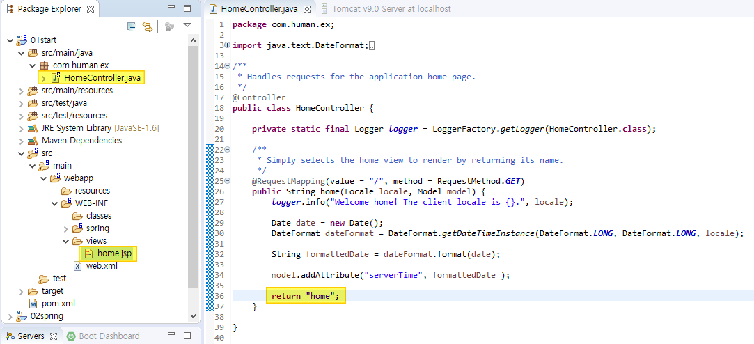 -> return "home" 의 위치는 views 폴더의 home.jps 파일