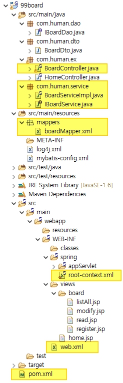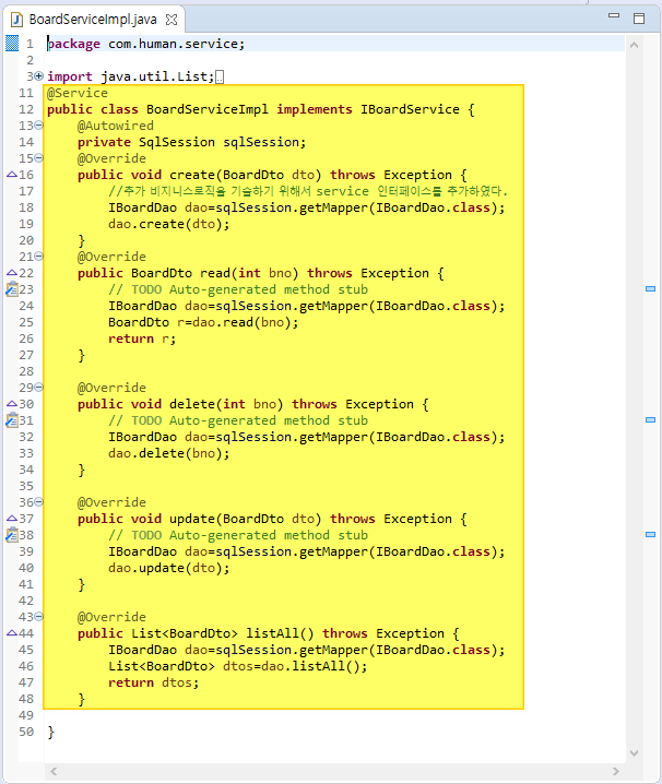 IBoardService 인터페이스를 상속받는 class 파일 작성