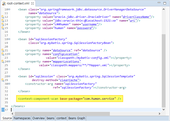 component-scan을 사용해 Service 어노테이션을 xml에 선언하여 사용