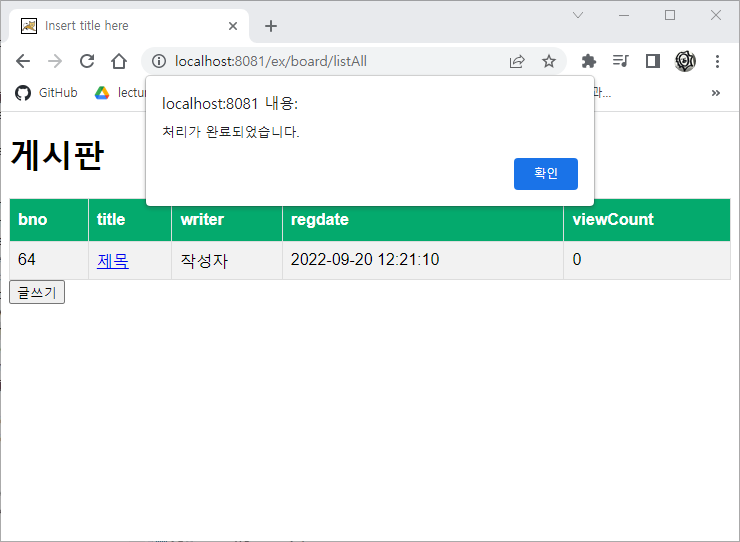 //result는 글을 등록하고 들어오면 success가 들어 있고,