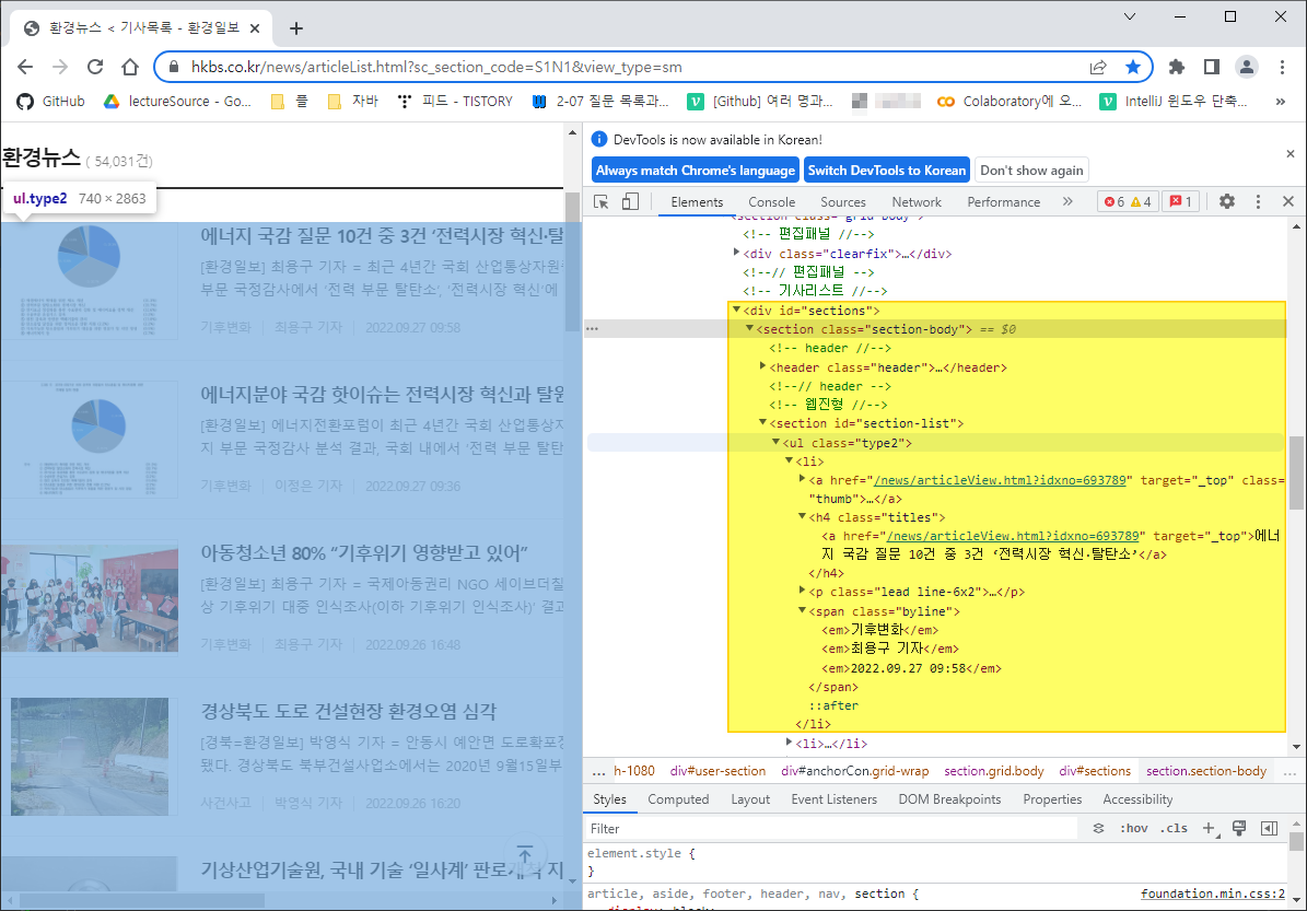 준비물2 : 크롤링 할 사이트 html 구조 및 가져올 데이터 확인