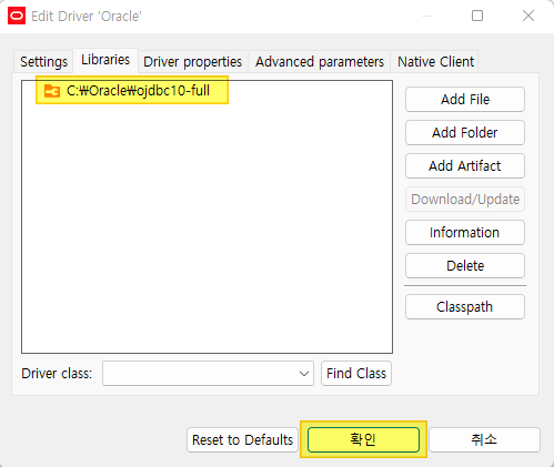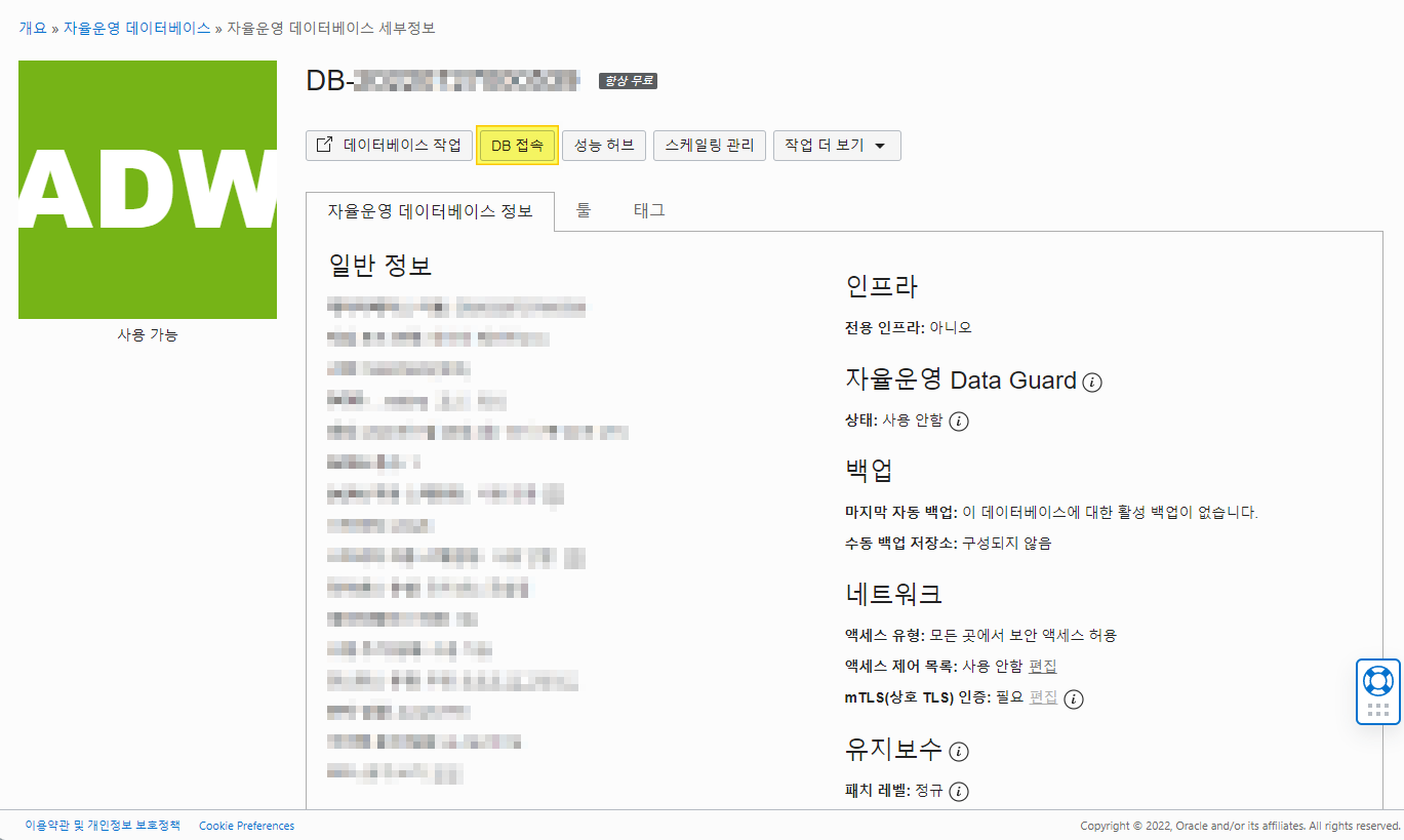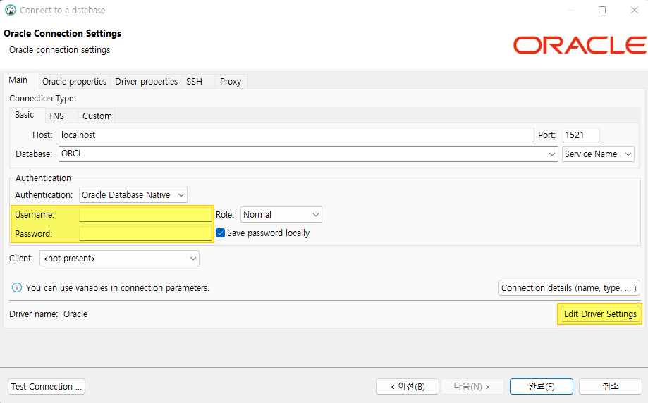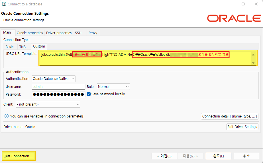 - Password : 오라클 클라우드 DB에서 설정한 비밀번호 입력