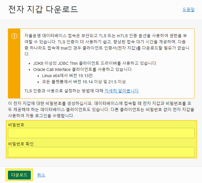 - 오라클 클라우드 DB 파일명, 파일 경로 입력